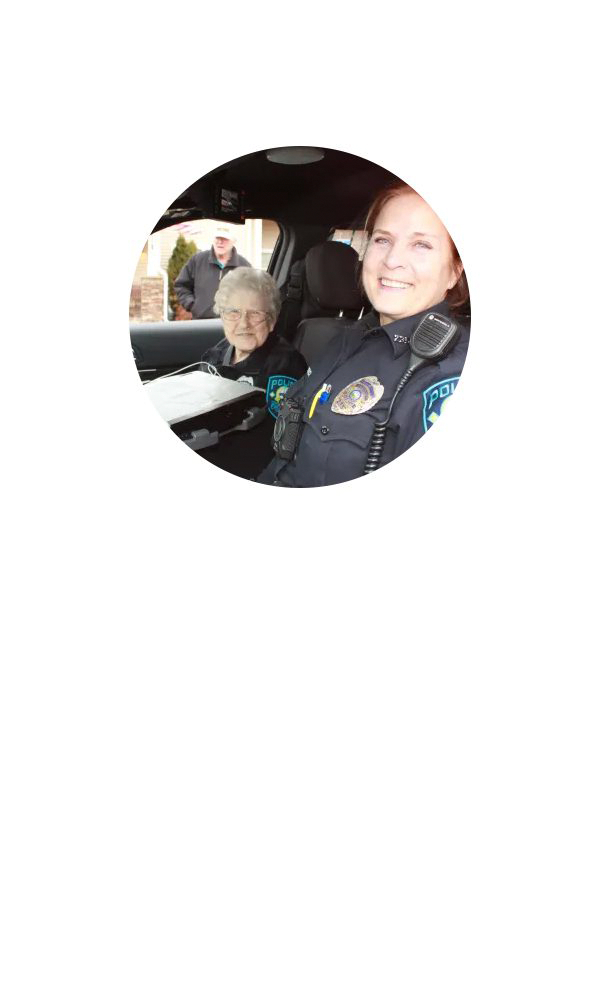 They soon realized that one of the officers was Georgie’s grandson, and the police had come to take Georgie on her Dare to Dream outing–a ride in a real police cruiser with its lights and sirens on!